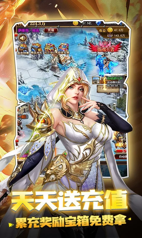 《守护英雄传说送月卡送8000》火热来袭!开局送GM1,登陆送8000充值(可拿活动奖励),升级送真实千抽! 圣堂、混沌、自然、深渊四大阵营,极品英雄任你所用!自动升级轻松挂机,养肝护肾福利资源取之不尽!好友结盟连纵对战玩法,让你尽享策略的魅力所在!在这里你就是独一无二,在这里你就是天选之子,这是你的世界一切由你来主宰!少年啊,拿起你手里的剑,与我一同去守护英雄传说吧!