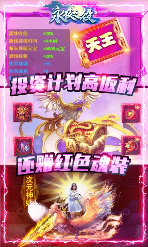 《永夜之役(送GM特权)》是一款好玩有趣的仙侠类风格的大型多人在线角色扮演类游戏,游戏中上线即可领取超多的福利奖励,玩家还可以在游戏中乘风御剑,体验修神的快感。同时独创了仙侣,修神,神物等系统給玩家更强的代入感!同时游戏中有丰富玩法御剑飞行,神器,可爱的萌宠,华丽翅膀,精美的坐骑等多样玩法。给玩家一种完美的修神体验,本游戏不仅在游戏画面上表现华丽,技能特效绚烂,还在游戏中融合仙侠策略的玩法,大大提高了玩家游戏的乐趣。