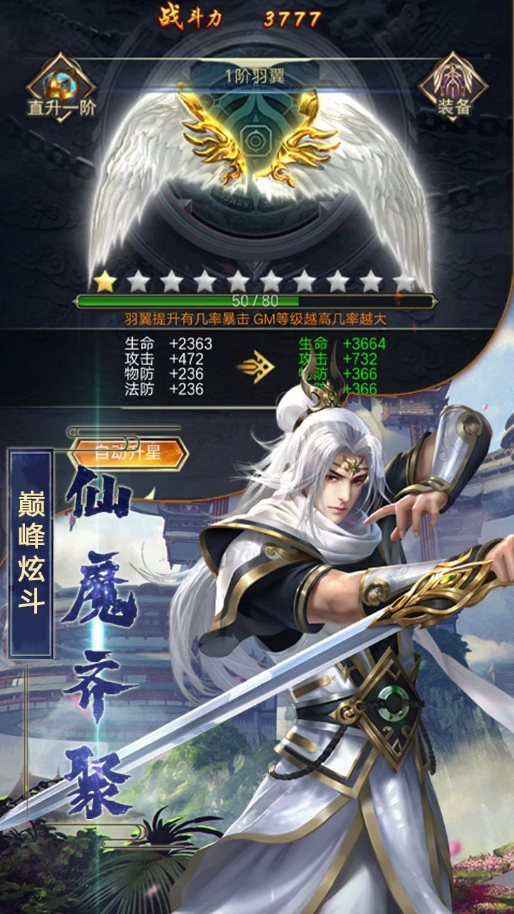 《战仙传》是一款以厚重恢弘的魔幻故事背景,以即时畅快战斗为核心的ARPG手游,让你在仙魔乱舞的世界中,体验一场无差别的畅快激战。精美华丽的游戏场景,酷炫夺目的游戏特效让你私享极具冲击的震撼视觉盛宴。还在等什么?快参与到游戏中,与道友、仙友们一起降妖除魔吧!