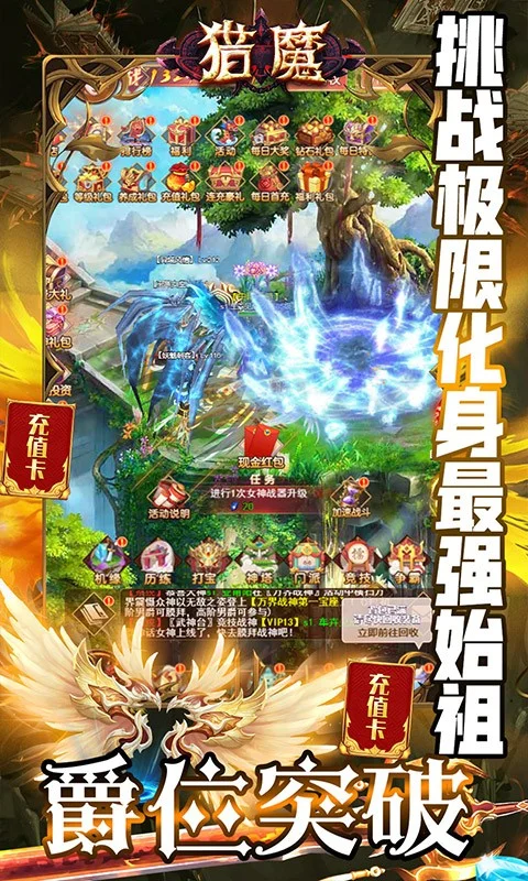 曾几何时,骚年人心中都有一个猎杀魔物的梦,在《猎魔(送3000充值)》恶魔遍布的世界,你的梦终可实现。你就看这酷炫的技能,这奇妙诡谲的场景,买不了吃亏买不了上当。你就看,同各类女神缔结契约,进行美妙互动;你还能参与世界boss战,爬塔镇压魔神,虐杀魔物,就在此刻;跨服争霸,抢占城池或驻守圣域,成一方霸主;还有同服竞技,看谁不爽,上手PK,当个战无不胜的武神,岂不妙哉!少年,你如风,你如雾,潇洒就是如此的简单!快,来这一场说走就走的冒险吧!