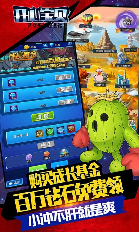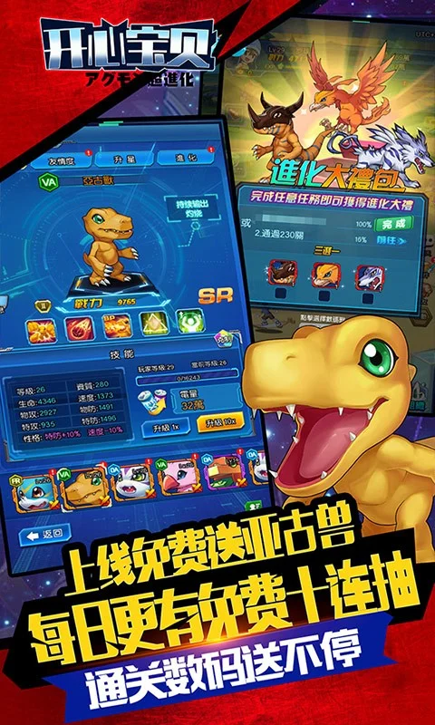 《开心宝贝》是一款以幻想中的数码宝贝为背景的卡通卡牌游戏,将带您回忆童年,回顾孩提时期对勇气、友情、诚实、希望等美好品质的感动和向往。上线免费送千元充值卡,亚古兽、 钻石*28888 金币X100万等等,超多福利助您打开一扇通往童年与幻想的奇迹之门。