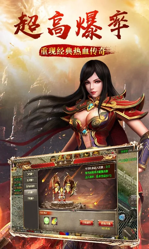热血不断、福利不停。刀刀光柱,爆率提升,神装满地,好玩又不贵,活动多样,赞助积分全部可爆,免费福利野外夺宝,pk爽,随时攻城,唤起你的热血岁月,重现你的峥嵘青春!