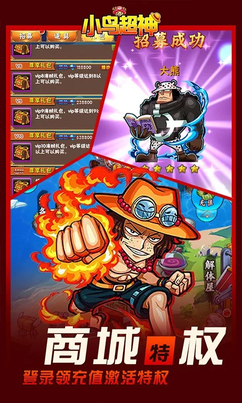日漫经典大航海题材手游来袭!高度还原了原动漫中的角色与剧情,众多熟悉的面孔为你呈现,给你最真实的动漫手游!游戏人物设计全面贴合原作设定,用心打磨场景、动作细节刻画,无损还原粉丝心目中的大海盗时代。游戏中草帽一伙、白胡子、比斯塔、乔兹等实力伙伴悉数集结,海量福利等你领取!