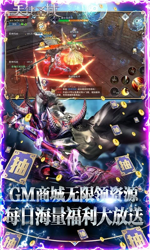 宝,极品道具抽到手软,更有GM特权无限领取道具,战力狂!!!次时代电影IMAX高清画质给你带来极致视觉享受,游戏百套时装随意切换,个性彰显的称号让你享受与众不同的荣光,神级魔宠伴随你征战大陆,百种天赋符技能让你无惧开战,万人城战点燃你的PK热血,boss之家各种顶级boss随时挑战,满地神装随时等你来爆。你还在等什么,赶快邀请小伙伴一起降临天使大陆吧。