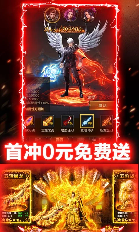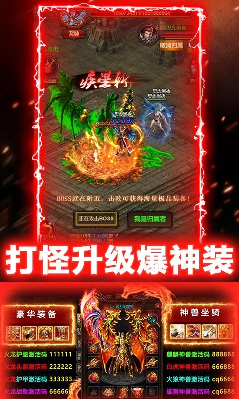 《双倍传奇送千元充值》是一款MMO与RPG为一体的定制版大型传奇手游。 原版复制经典战法道三职业,装备秒回收换元宝,击杀boss必爆元宝,更有充值卡,极品神装。打宝,自由PK,血战红名,热血攻沙,是兄弟就一起来战吧!
