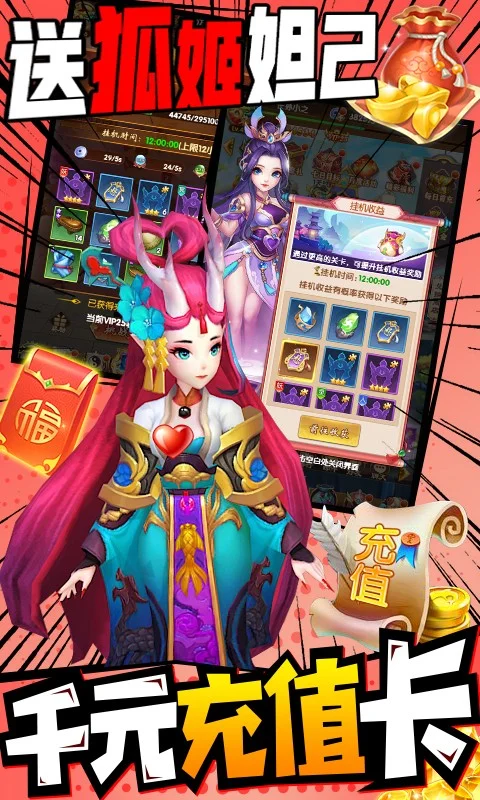 《戮天之剑送SS无限充》奇幻来袭,上线即送VIP10,超千元充值卡,更有海量仙玉、SS英雄等福利大礼,带你进入华丽缤纷的仙侠世界,放置战斗,指尖冒险,快带领你的六界英雄小队,开启属于你的历劫之旅!