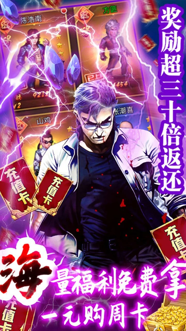 上线送V21,送188888钻石,金币*300W,转转大礼包*1,赌神转盘,上线无需领取即可获得!新年福利PLUS!直接拉满起飞!飞速升级,畅爽体验!经典人物重出江湖,热血不败经典重来,正版授权《热血战师》复刻经典之作,真实还原十二话事人/五虎争霸,游戏中宏大的世界观让游戏与原著剧情完美结合,K-1世界大赛,武斗拳馆争霸,兄弟上阵合体必杀,丰富多样的玩法,特效爆表的技能,酣畅淋漓的战斗一定会让你感受到古惑仔们的兄弟之情!更有海量钻石、强力角色、道具好礼、每日在线礼包等多重福利登录即送!豪礼不断,助力畅爽体验全新古惑仔世界!