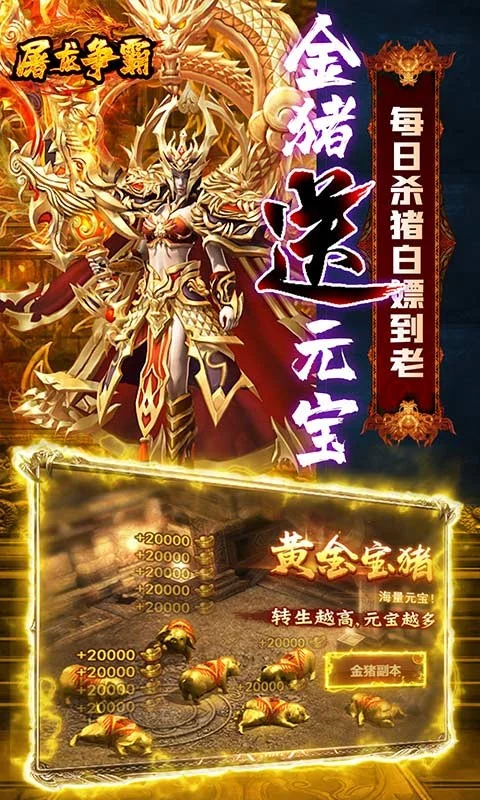 《屠龙争霸BOSS爆充值》是款还原经典传奇大型arpg放置类游戏。 上线vip15,直送1000元充值卡,更有绝版战灵“齐天大圣”免费送,神一般的开局,走向人生巅峰。 每日登录免费再送充值卡,无限领取!独创金猪夺宝新玩法,痛快打宝,装备道具永久真元宝回收!