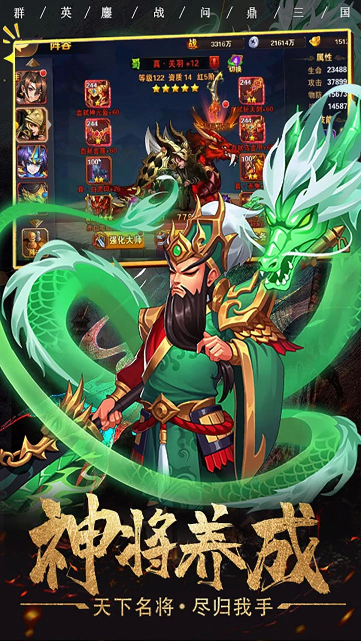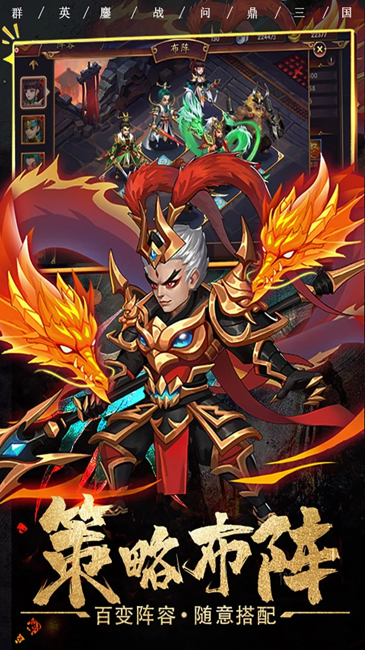 谁将引领三国英雄豪杰战神吕布、枭雄曹操、武圣关羽等诸雄,盖世英豪,气贯九霄,群英集结,荡平动乱。精致的美术画风,新颖的骨骼动画,让战斗更加热血澎湃;华丽炫酷的合体技能,随心搭配,腾空连击超必杀,一气呵成横扫千军。脚踩星河,不惧万敌,挥军百万,麓战九州,让你感受加冕为王快感。