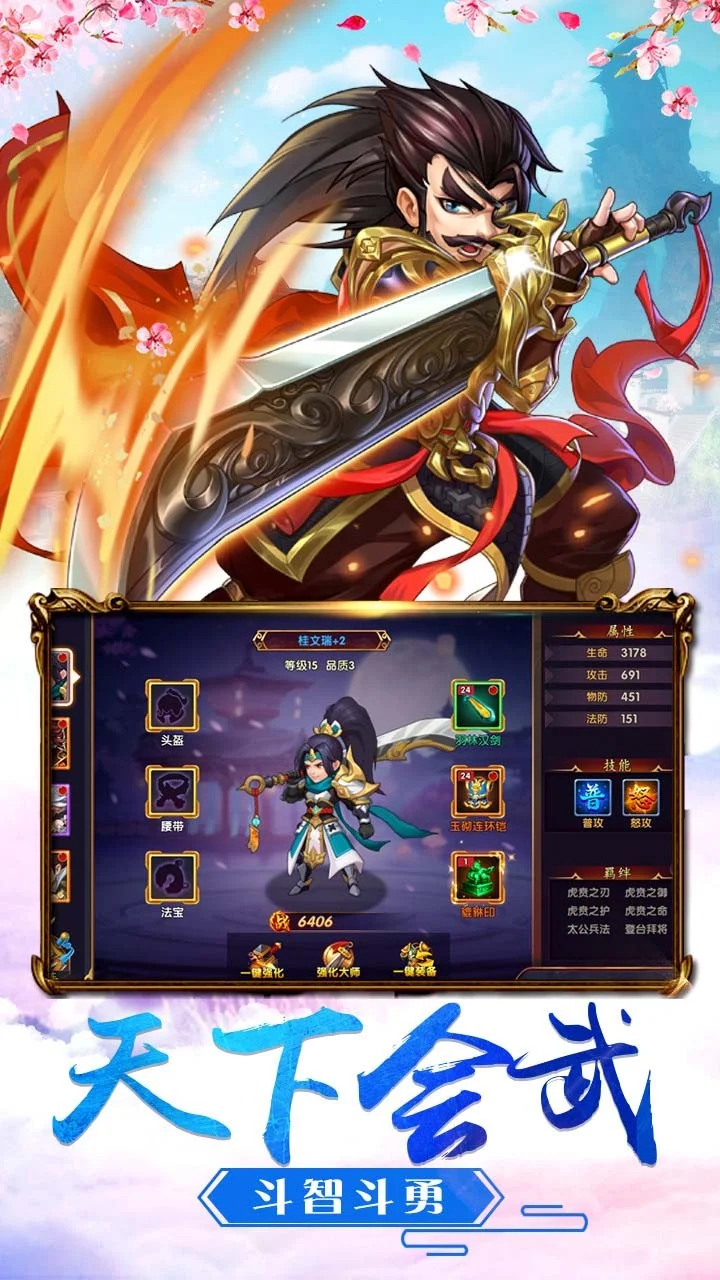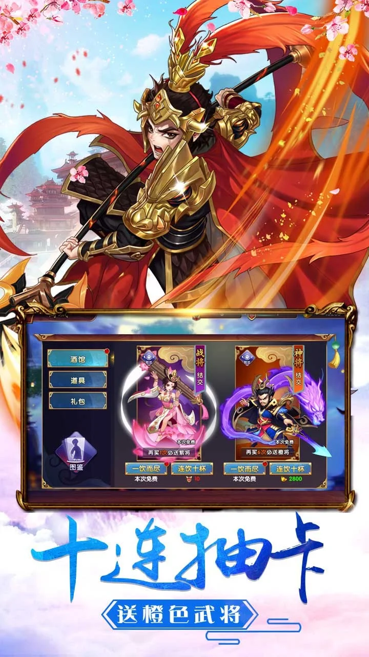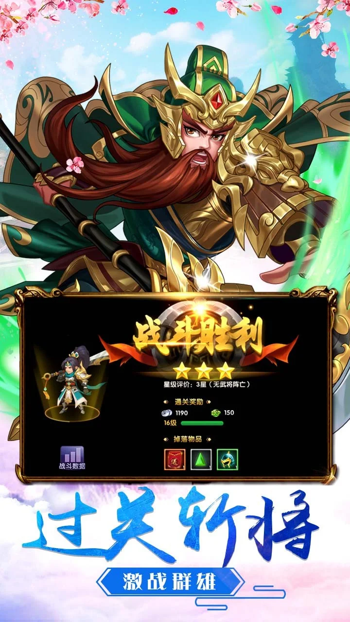 天地异变,烽火连天,自有英雄奋起,社稷将倾,谁将问鼎天下。谁将引领三国英雄豪杰战神吕布、枭雄曹操、武圣关羽等诸雄,盖世英豪,气贯九霄,群英集结,荡平动乱。精致的美术画风,新颖的骨骼动画,让战斗更加热血澎湃;华丽炫酷的合体技能,随心搭配,腾空连击超必杀,一气呵成横扫千军。脚踩星河,不惧万敌,挥军百万,麓战九州,