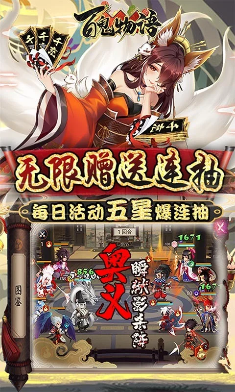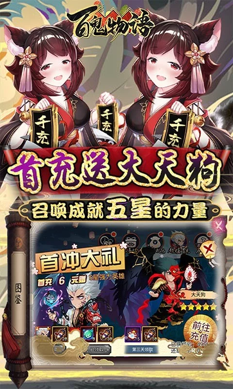 《百鬼物语天狗送千充》是一款Q版卡牌放置手游,暴烈战斗遇上和风卡牌,别有一番风味。整体美术采用传统日式浮世绘风格,在此基础上融入日式元素,打造出市面上独一无二的美术风格。百余位神鬼武将还原历史服饰与造型,同时音效也采用日本传统乐器来为此款游戏配乐,玩家在游戏里可以玩家可以培养自己的卡牌,组建自己的英雄阵容!