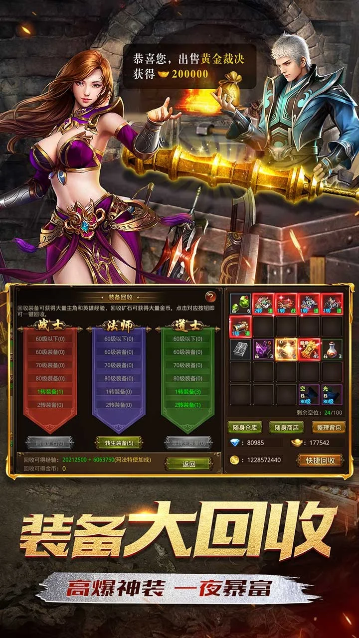 《神魔传说首充送神兵》复刻经典端游的全新复古1.85版本ARPG手游巨作!以前只能看前面,现在前面、侧面、背面都能看得一清二楚!经典的铁三角职业,战法道再现英雄合击;超强必杀技全屏秒怪,打boss刀刀切割,非一般的专属体验;好兄弟再相聚沙城,传承最原始的复古玩法,还有跨服攻沙,进驻名人堂,争霸史上最强公会!