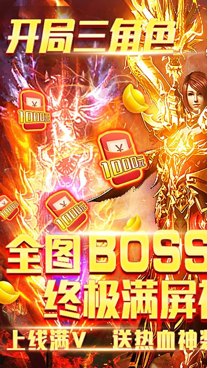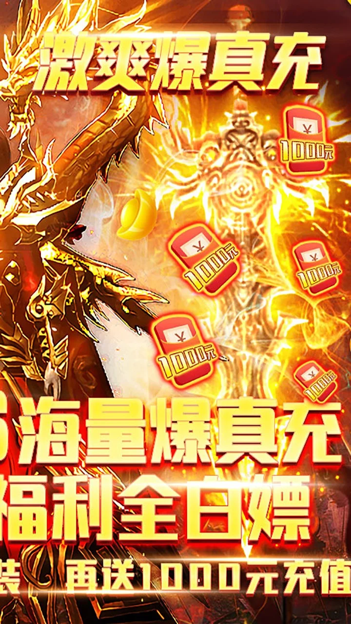 激爽爆真充开局良心福利火爆来袭,击杀boss无限爆真充,全新珍宝阁一折购,元宝爆仓嗨翻天。升级即可激活三角色,创角满V,送1000元充值卡,再送热血神装,10000万金币,每日签到白嫖充值卡! 打不尽的BOSS,爆不停的元宝,千人同屏攻沙,跨服自由PK
