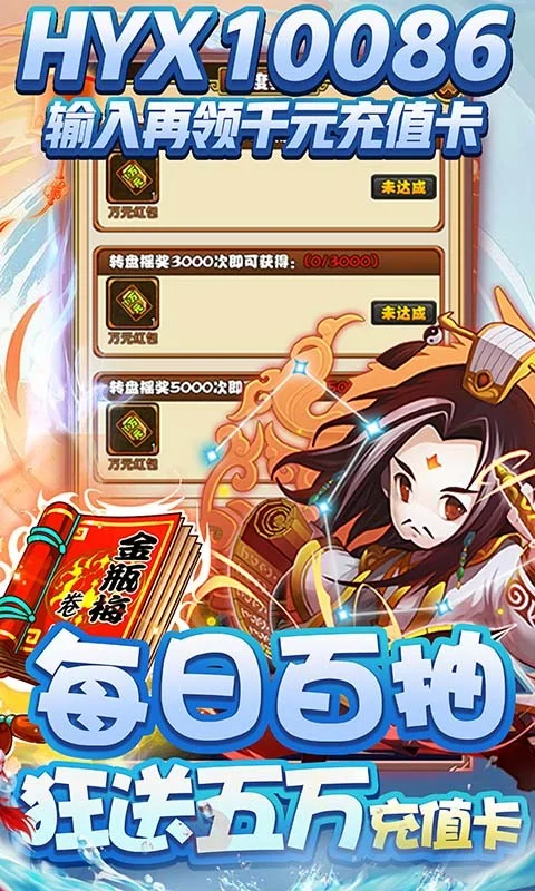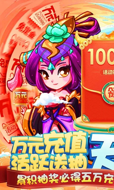 《西西三国送5W充值》是一款三国为题材的卡牌游戏,游戏上线即送至尊会员,88W元宝,1亿铜钱,至尊会员免费赠送无限元宝特权,每日最少领取30w元宝!输入兑换码:HYX10086可领取1000元充值红包!每日任务完成活跃奖励可获得百抽,累抽1000次即可获得万元红包,最高可得超5W充值奖励,等级礼包+推荐玩家还送2600元充值奖励!最强盲盒礼包,最强欧皇就是你,海量珍稀道具等你来拿!不玩虚的,我们就是要做最强福利三国!精致的美术画风,新颖的骨骼动画,让打斗更加绚丽多彩;华丽炫酷的技能,让你感受全新无与伦比的战斗快感。名将切磋、过关斩将、周游诸国、梦回沙场等丰富玩法,让你感受三国时代杀敌百万的激情。脚踩星河,不惧万敌,挥军百万,麓战九州,让你感受加冕为王快感!