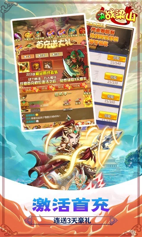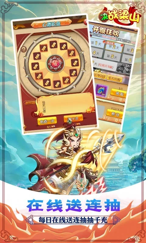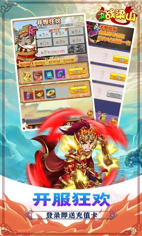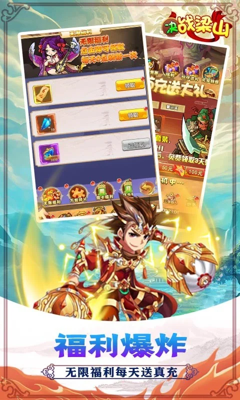 《决战梁山送GM千充》是一款制作精良的卡牌回合制游戏,有着丰富多样的玩法,超多的武将组合自由搭配,每日在线送抽奖券抽充值,无限福利每天上线送充值,升级更有千元真充等你来领取,放置战斗,指尖冒险,快带领你的小队,开启属于你的传奇史诗!