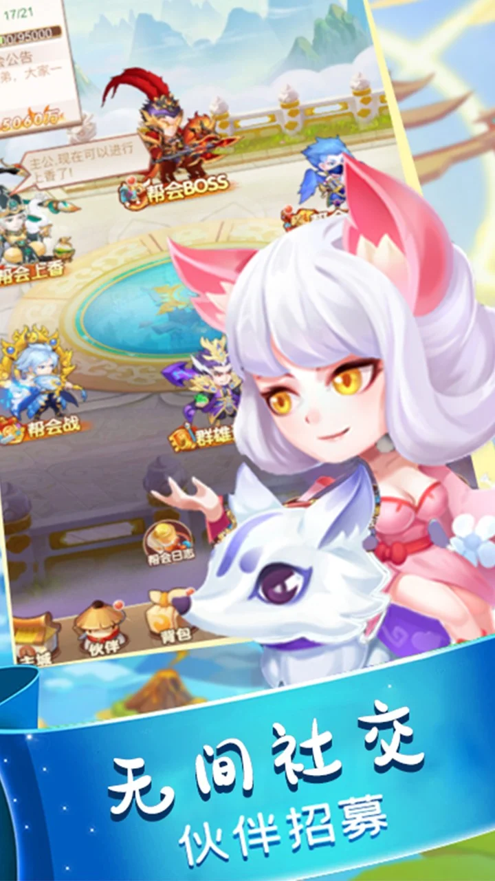 《冲吧大魔王》是一款三国题材的休闲放置卡牌游戏,游戏以通关主线关卡为主要玩法。玩家在游戏中可以收集武将组建最强阵容挑战主线关卡。主线关卡会产出主公经验,并且玩家离线的时候挂机队伍也会不停的挑战主线关卡获取主公经验。主公升级后可以大幅提升队伍的实力。除了主线关卡外,还有玲珑宝塔和精英副本供玩家挑战,挑战玲珑宝塔可以获取武将穿戴的装备,挑战精英副本可以获取低品质武将。获取的低品质武将可以拿来合成高品质的武将。 玩家也可以参与多项PVE活动和PVP活动。和全服玩家共同除魔的全民除魔,共同击杀世界BOSS。挑战武道大会,通关神魔试炼。参与三界夺宝争夺稀有符文,加入帮会参与帮会战。