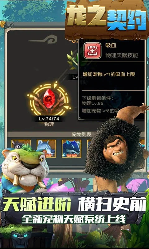龙之契约是一款回合挂机手游,你将在石器时代世界中经历一次围绕着亲情,友情以及爱情展开的奇异冒险。从最初的只言片语,到最后的真相大白,在抽丝 剥茧的过程中逐渐体验龙之契约所营造的独特氛围!游戏有多种超萌、超酷的宠物,并有全新的战斗系统和多样的装备系统!
