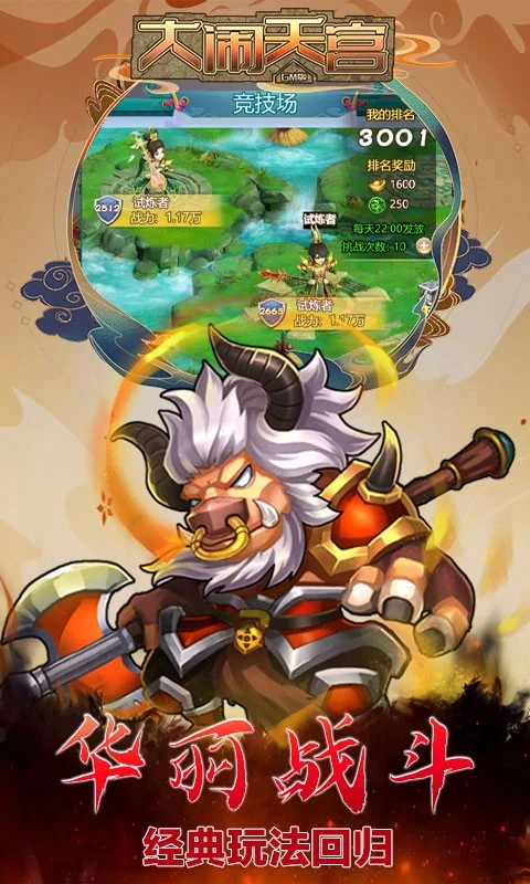 《大闹天宫》是一款神话架空题材的回合制游戏。包含浓郁的远古神话气息,精美的画面表现,便捷轻松的挂机玩法,酷炫的坐骑与翅膀系统,还有唯美的外观系统。其他还拥有仙侣、神兵、法宝、宠物等各种轻松又强大的功能系统,让你每天都有不同的极致体验!