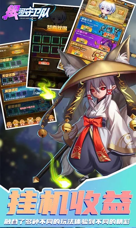 《银河守卫队》是一款未来幻想题材的卡牌类手游。游戏采用架空的世界观,以北境冰原、黄土荒野、火山群岛和丛林遗迹四块大陆为场景,讲述玩家扮演的救世主一路过关斩将,拯救被魔王所操控的世界的故事。玩家可以在游戏中召唤收集各色战姬英雄,击败魔王的爪牙,逐渐成为最强的勇者。游戏开始,主角突然被人唤醒,发现自己已身处未来世界,同时世界也正受到魔王的威胁,魔王主要通过操控战姬英雄的心智来扰乱世界的秩序,而主角则要依靠小助手的引导,白手起家通过一点一点的收集战姬英雄,一点一点的养成队伍,使之不断成长,以击败敌人的方式阻止魔王。同时,游戏还融合多种策略玩法,引导玩家收集素材资源以强化队伍。游戏还充分考虑了时间不充裕玩家的游戏需求,挂机产出能够让玩家间隔一定时间再回归游戏,全自动战斗模式,即便玩家仅仅是挂机也可以享受获得奖励的乐趣。游戏的战斗具有一定的观赏性,极大程度的满足了玩家想了解传统文化的需求。同时相比传统手游,游戏简化了大量的文字描述,使得故事逻辑简单清晰,玩家即使不详细查阅文本,也依旧能无障碍的完成游戏。点击屏幕是贯穿游戏始终的操作模式,仅用一个手指即可完成游戏,无其他复杂操作,对玩家的操作习惯非常友好。