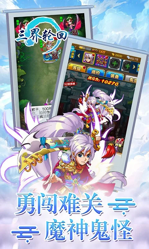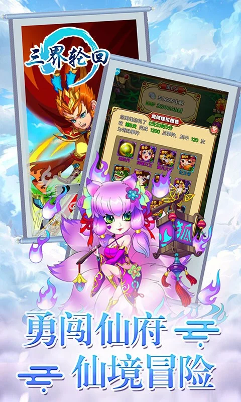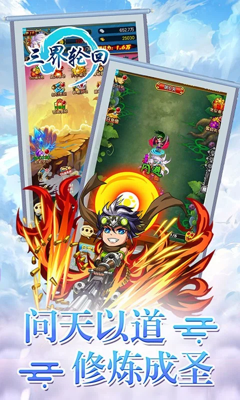 《三界轮回》是一款西游题材的Q版卡牌、放置类挂机休闲游戏。勇闯九九难关,尽灭魔神鬼怪,问天以道,修炼成圣!合战世界boss、勇闯地府、仙境冒险、蟠桃园、锁妖塔、巅峰竞技等精彩活动带你玩转西游。一棍扫全军,千劫欲降妖。重温西游经典,等你来屠魔。