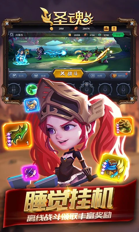 《圣魂》是一款以西方魔幻为背景的冒险题材放置卡牌类游戏。 在游戏中,玩家可以收集自己喜欢的英雄,对其进行升级培养,提升自己的战斗力。还可以在征战中攻击野怪、收集资源;可以与其他玩家对战;还可以加入公会,与公会其他成员共同战斗,争夺第一公会的宝座,带领你的公会走向胜利!更有神奇的宝藏和遗迹,等待玩家发掘。 游戏有600多个关卡,难度由低到高。并且有通天塔等挑战型玩法,同样的由易至难,享受战斗的乐趣。 在探索的过程中,需要通过培养各种英雄,提高综合战斗力来击败成长之路的怪物,才能获得更好的收益以及奖励。 通过游戏可以培养玩家的探索求知能力、增加玩家的观察力、鼓励玩家敢于挑战,使玩家无形之中建立起勇于面对各种难关,对于任何事都有一种自强不息的心态。