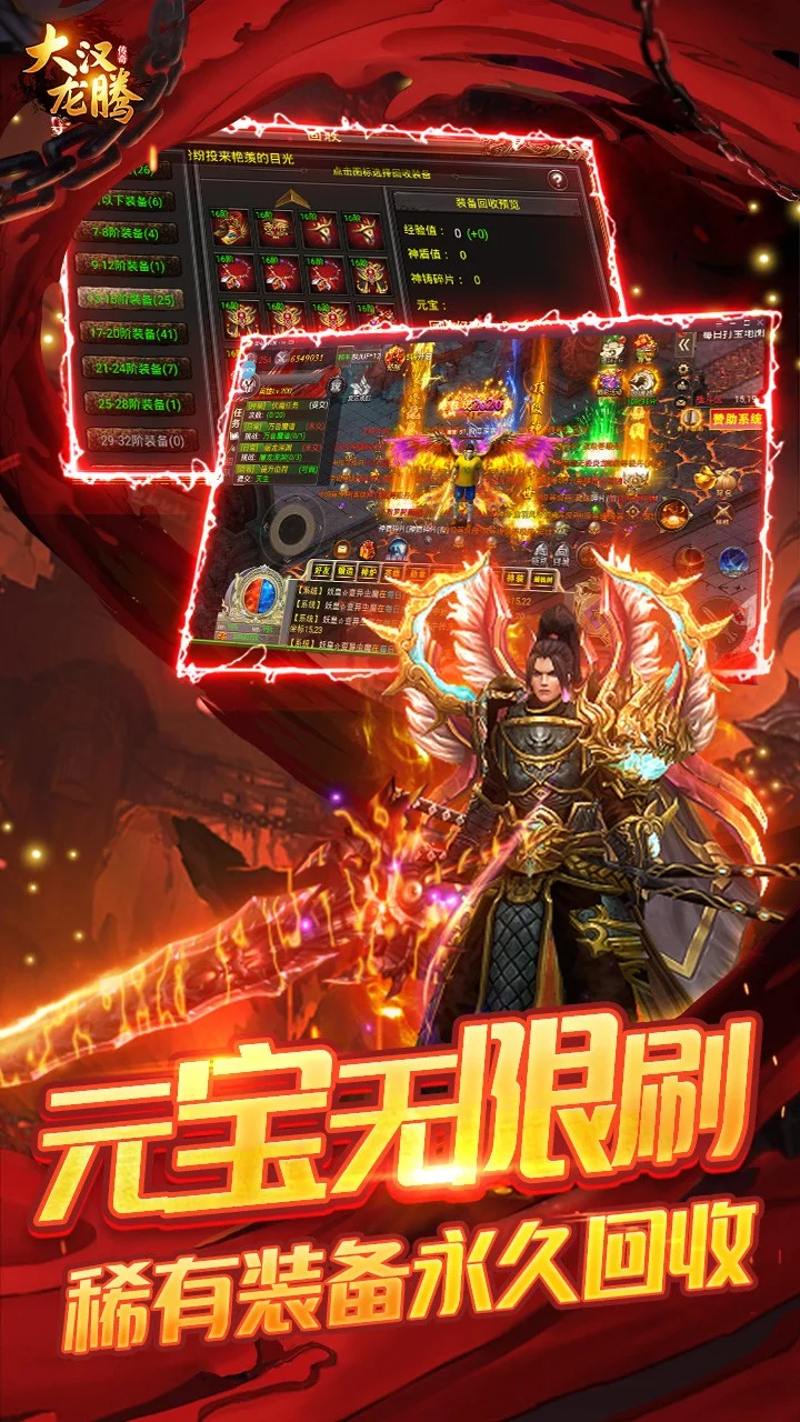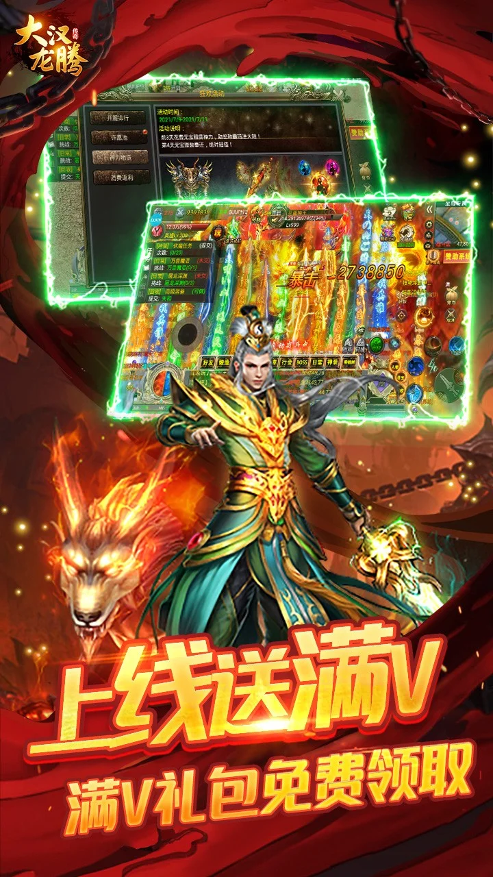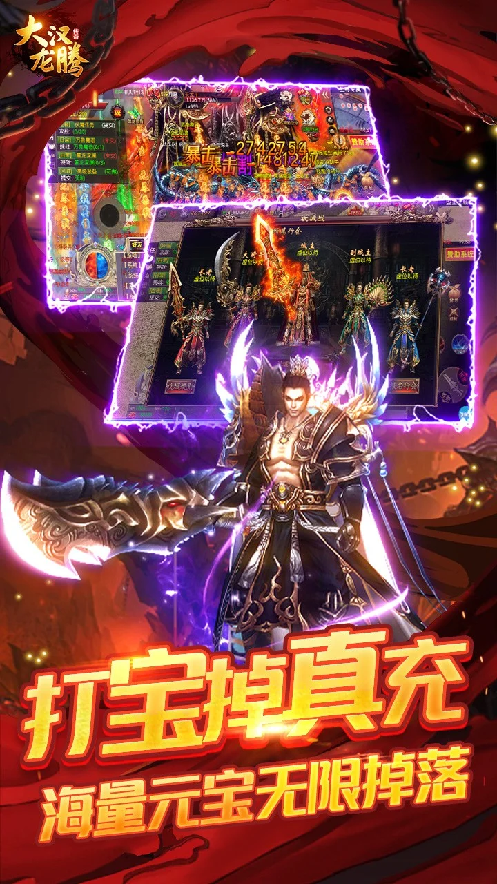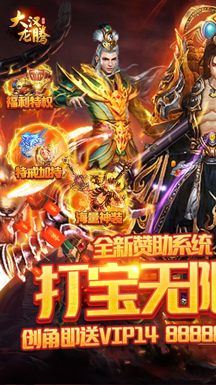 《大汉龙腾(打金爆真充)》上线即是满V、赞助系统助力玩家不氪金也能当上大佬!所有装备可回收兑换元宝,强力切割!英雄暴击!所有神装均靠打!稀有极品装备狂爆!散人天堂!只要努力所有极品都尽收眼底!
