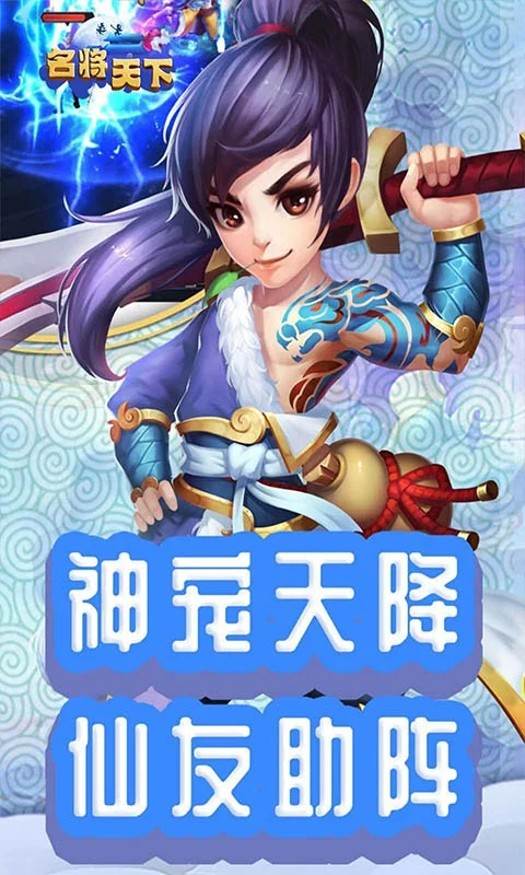 创新回合制仙侠手游《名将天下》带你重走西天取经之路,独创名门同伴,搭配各路萌宠, 助你横扫仙妖魔。 五大门派,相生相克,彰显极致策略回合战斗玩法。 轻松语音,边聊边玩,打怪撩妹两不误。下一个回合,与你不期而遇!