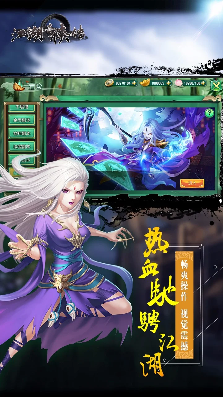 Q萌灵动角色,古风清新世界,《江湖奇侠传》是一款由经典小说改编的3DMMORPG武侠手游。仗剑江湖、精忠报国!玩家将扮演武当、峨眉、少林等门派弟子,学习各派神功武学,挑战一个个江湖势力,游刃于国家和蛮夷之间。柳迟、陆凤阳、陆小青等人气角色完美还原,游戏还有更多创新玩法,法宝、千层塔副本、侠客招募、世界BOSS等经典PVEVP玩法等你体验。再掀江湖风云大战,誓做武林奇侠,2018最有江湖味的武侠手游。