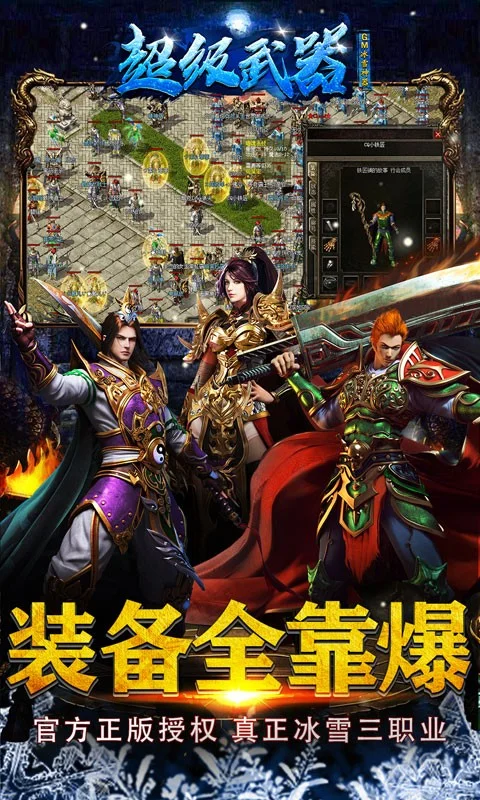 超级武器(GM冰雪神器),复古三职业冰雪版本,开局就送GM刀!超高爆率!全新地图,冰雪神器,稀有boss无限刷,装备红包无限爆!准点攻沙,等你来战!绝对是你没见过的全新版本!还在等什么,快来加入吧!