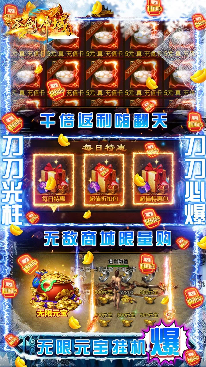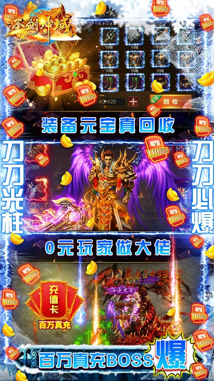 圣剑神域是一款全新的传奇动作手游,上线即送vip15、元宝20000、金币2000w,无限福利每日壕领不停!创角直升百级,挂机打Boss,充值随地爆!百倍返利,1折商城!好玩劲爆到手软!真福利手游欢乐来袭!快来邀请朋友一起征战沙城吧!