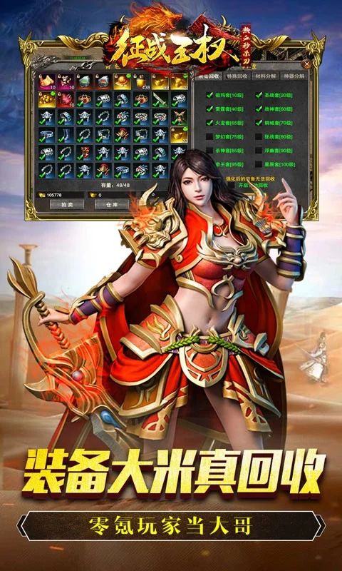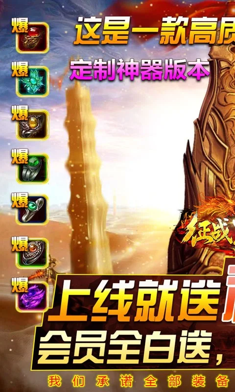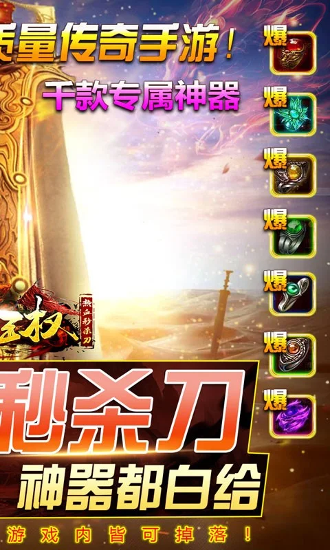 征战王权(送热血秒杀刀)是一款微变复古神器传奇手游,上千神器专属,上百张地图,所有神器全靠打。游戏整体进度不快,偏向于探索玩法。2021追梦传奇!!
