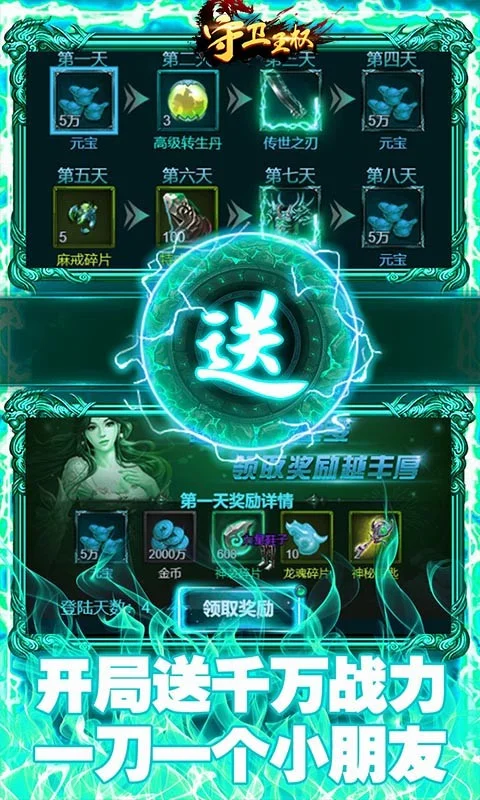 守卫王权(送两万真充)是一款全新的真福利传奇!开局免费送VIP15、百万元宝、金币*100000万,无限福利每日壕领不停!创角直升百级,20000真充值免费送!挂机打Boss,充值随地爆!千倍返利,1折商城!好玩劲爆到手软!开学季真福利手游欢乐来袭!快来邀请朋友一起征战沙城吧!
