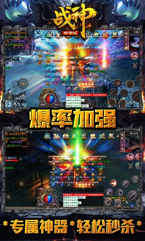 《战神新世纪(超级神器)》是一款全新的1.80动作冒险类传奇游戏!体验原汁原味的传奇,全面更新高清画质 ,极致视觉体验,攻沙体验堪称完美,人物刻画惟妙惟肖,万人在线热血对战,激情不断,这么爽快的游戏,你还不下载体验?