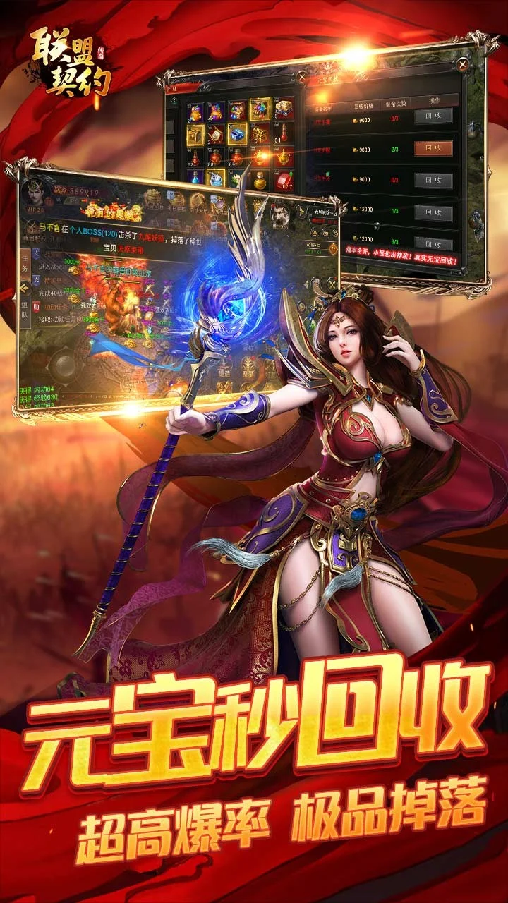 《联盟契约》延续了端游传奇经典的玩法,还原战法道三职业,飞升渡劫征服玛法大陆,高清画质与丰富剧情和打击感爆棚的技能与超高爆率给您带来原汁原味的真传奇!高清的游戏画面,丰富的游戏剧情将传奇故事背景与游戏做了完美的结合,携手昔日兄弟,制霸皇城、激战BOSS,绚丽的技能,酣畅淋漓的战斗,超高爆率及超保值的装备,一定会给您.带来超值的享受。
