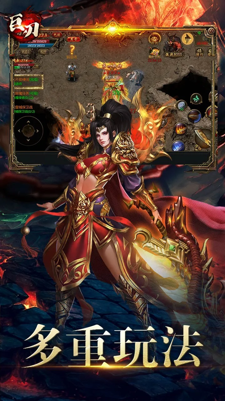 《巨刃》火热来袭,经典重现,传承经典传奇三职业,战、道、法,组合大招瞬杀BOSS,杀人爆装、行会争霸、沙巴克攻城等经典内容,力求在移动端完美再现热血传奇!极致画面、炫酷技能、流畅操作、即时语音……玛法勇士们,赶快呼唤小伙伴加入吧,一起刷猪洞、闯沃玛,跨服拿沙,开启你的传奇人生!
