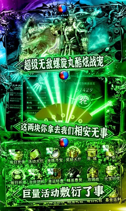 《戮天之剑(万物皆可爆)》是一款原汁原味的传奇类手游,上线VIP13!VIP奖励随意拿!复古的人物模型、武器装备、BOSS带你回味1.80版本的盛世经典;全新的单职业战士集法师、道士技能于一身,给你无比爽快战斗体验;丰富的玩法,打不完的BOSS,极高的爆率让你能够在传奇的海洋里遨游。新增宠物系统能够让你打怪无忧,抢宝无虑。在游戏中不仅可以体验动作操作所带来乐趣,更精心设计了剧情引发玩家对人生的深入思考,使玩家体会团队协作的乐趣以及惩恶扬善的精神, 努力培养玩家良好的价值观和世界观。快带上小伙伴们一起来攻沙夺城吧!