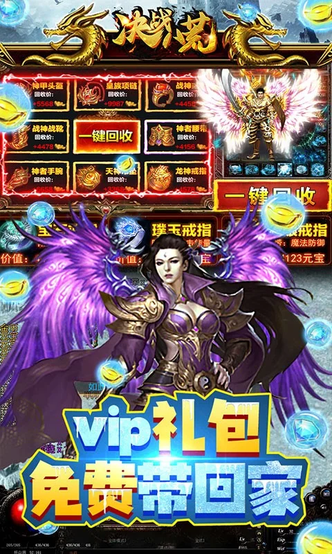 【决战八荒】上线送满级VIP10,10W元宝,1000W金币,未来战士限时体验!!返利我们玩真的,不是绑元,没有钻石,真回收,送千万元宝,真的送!!一包烟钱来入股,从此变成福利号,每天免费领取代金券,普通福利号的福利一点也不普通,无限资源免费领,没有套路,满足等级就可以领取