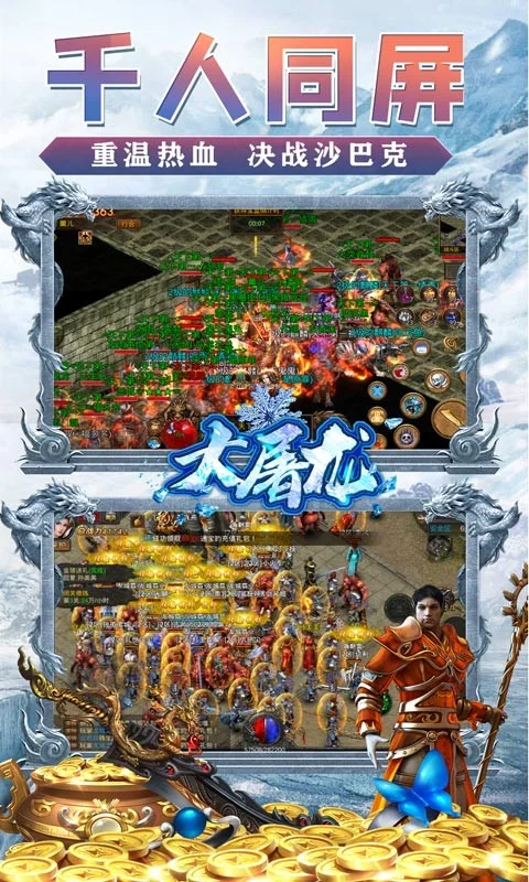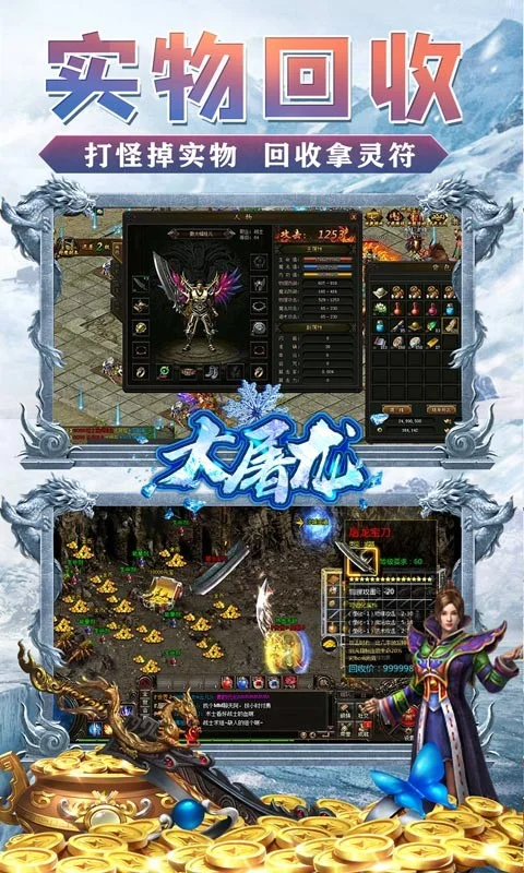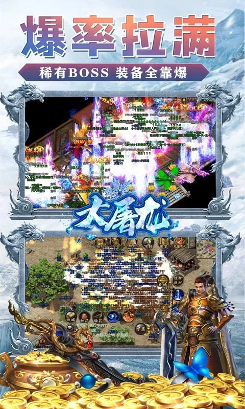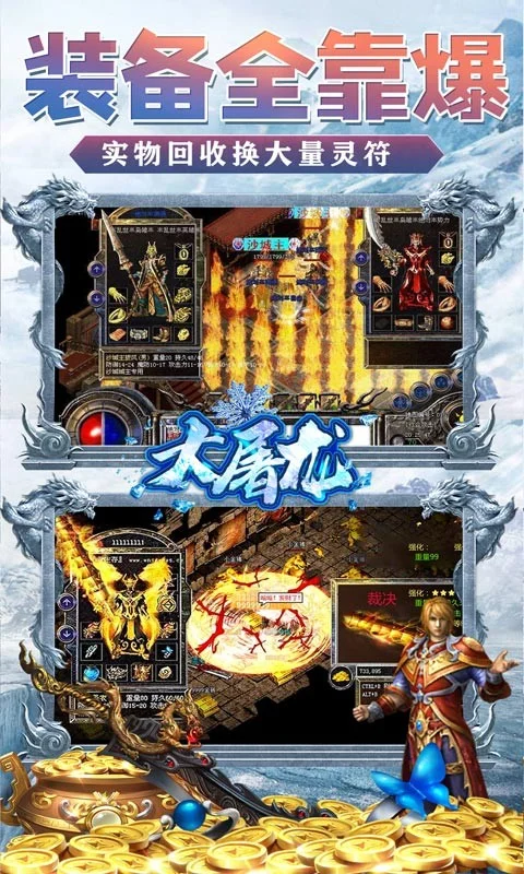 大屠龙(送4转顶赞)是一款全新复古冰雪版本,开局就送到四转,还有送顶级赞助礼包助你一飞冲天!超高爆率券!稀有材料!购买赞助,送自动拾取,宠物租赁,赠超强斩杀bufff,助你砍遍BOSS!全新冰雪地图,活动boss无限刷!万人同屏,争夺沙巴克,等你来战!!绝对是你没见过的船新版本,还在犹豫什么,快来加入吧!