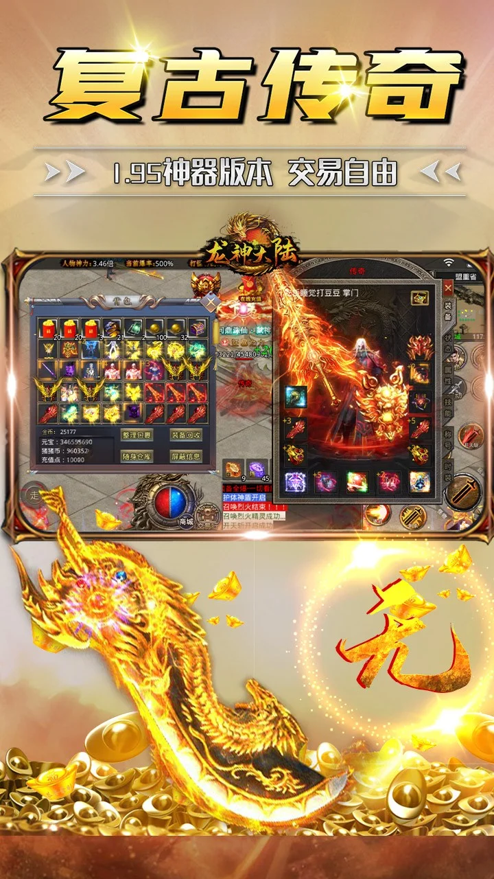 《龙神大陆(神器无限刀)》是一款1.95版本单职业复古传奇游戏,复刻经典,神器现世。在这个版本里面可以全方位感受到刀刀切割、刀刀冰冻的畅快体验,极致攻速让你可以更快的秒杀boss。地图全部免费,装备和货币全都可以爆,红包活动多,有时间就是爷,快来加入我们一起砍传奇吧~
