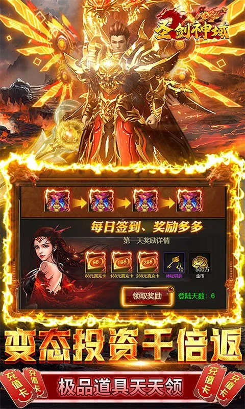 圣剑神域爆百万真充是款还原经典传奇大型arpg挂机类手游。 经典传奇,回味无穷!上线送vip15、100w元宝,绝版特效动态武圣时装!一次充值终生返利无限真充!BOSS无限爆百万真充,全网最强福利传奇华丽来袭!邀你来战!每日真充卡无限领取,GM特权商店全部1元宝购买,策划跳楼大甩卖!无限福利活动,超多酷炫时装,快来和你的兄弟们征战沙城吧!