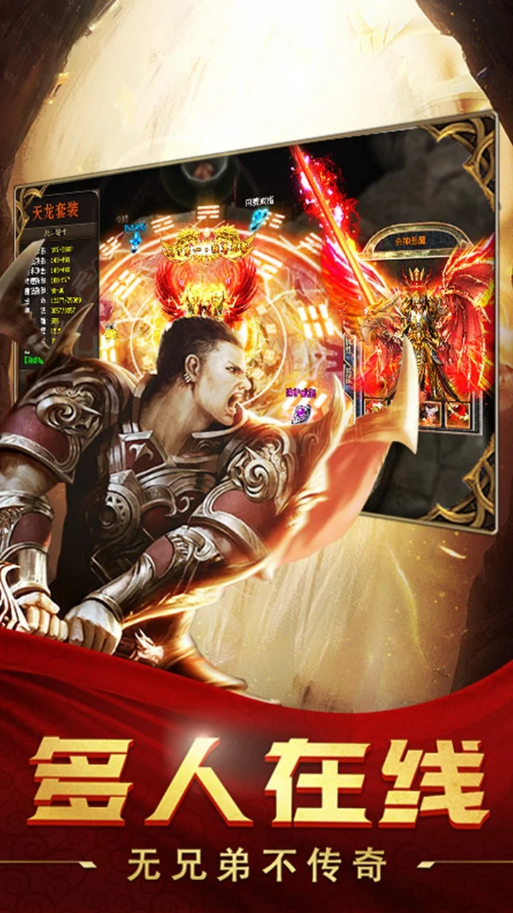 还原经典玩法,原味呈现传奇游戏!攻占龙城,守城称王,问鼎最强公会!梦回沙场,你还是那个无所不能的烈焰霸主! 完美复刻,暗黑系传世经典!多人实时PK手游,延续了端游一贯的自由战斗模式,新的游戏背景,玩家们将在大秦陵墓中再度厮杀,刷野猪,爆装备!游戏还拥有酷炫的坐骑,翅膀,称号,时装等超级华丽外观,传说对决,激情爽快的PK体验尽在你的手中!