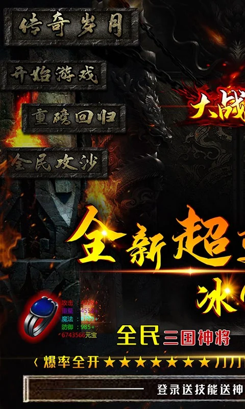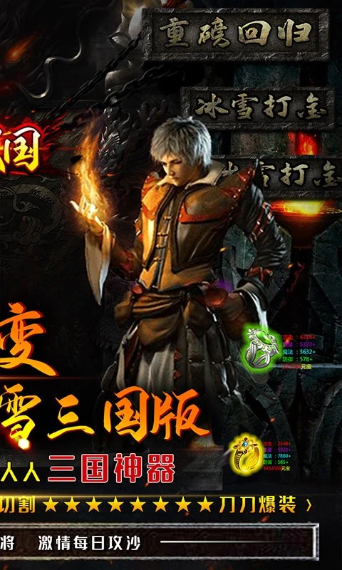 独有的三国特色神器,青龙偃月刀、方天画戟所有三国神器人人可爆,小怪爆一切、爆终极!