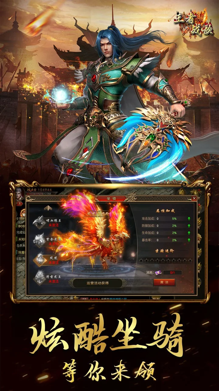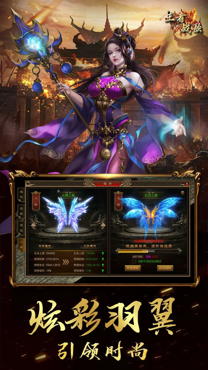 《王者战歌》是一款原汁原味的传奇类手游,复古的人物模型、武器装备、BOSS带你回味1.80版本的盛世经典;全新的单职业战士集法师、道士技能于一身,给你无比爽快战斗体验;丰富的玩法,打不完的BOSS,极高的爆率让你能够在传奇的海洋里遨游。新增宠物系统能够让你打怪无忧,抢宝无虑。在游戏中不仅可以体验动作操作所带来乐趣,更精心设计了剧情引发玩家对人生的深入思考,使玩家体会团队协作的乐趣以及惩恶扬善的精神, 努力培养玩家良好的价值观和世界观。快带上小伙伴们一起来攻沙夺城吧!