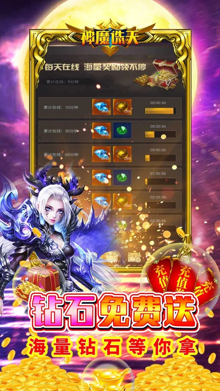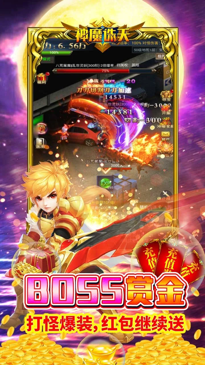 《神魔诛天(无限充值卷)》是一款MMORPG游戏,签到天天送充值卡,4角色玩法,画面精美,技能炫酷,杀BOSS送红包,刀刀切割,光柱随便爆,装备全靠打,战力狂飙,收集装备送钻石,野外自由PK,激情无限,超爽玩法等你来体验。