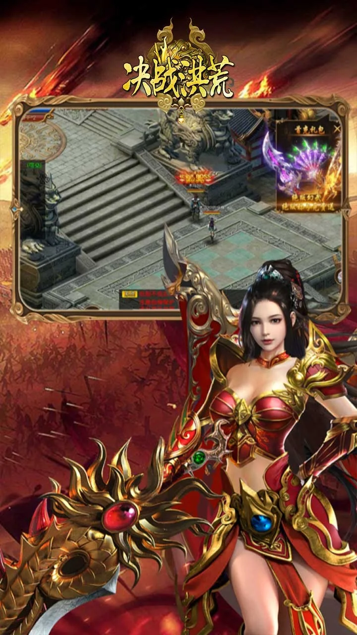 《决战洪荒》1.85超爽合击!刀刀加速!刀刀暴击!所有装备均靠打!稀有极品装备狂爆!散人天堂!只要努力所有极品都尽收眼底!BOSS数量1000只!极品装备100多!丰富时装外观凸显高富帅!满地爆红包!真红包!