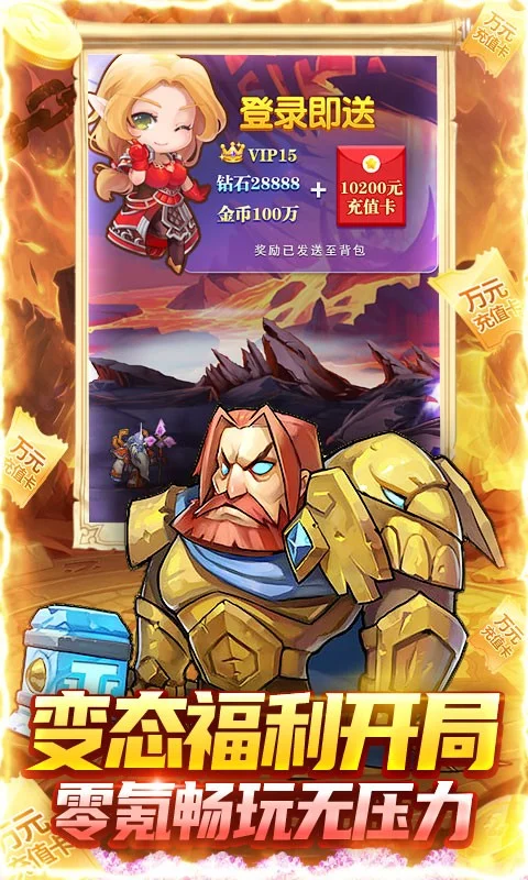 暗黑起源(送万元真充)》是一款卡牌放置冒险游戏,拥有多位高颜值魔兽英雄,游戏内送大量召唤券,白拿SSS英雄无压力,,上线即送10000元充值卡,充值卡也可激活超值首充和月卡,大量福利助您零氪畅玩,累计登录可获得一千万钻石奖励,升满SVIP等级不花一分钱,拥有玩法丰富的副本、刺激的PVP活动,带来全新的体验感受,无需担忧因战力不足而无法继续前进,更不必担心会因战力要求影响你的体验,因为轻松休闲的全自动挂机系统让你躺着都能赢!打不过没关系,睡一觉再来,轻松养成无压力!
