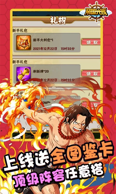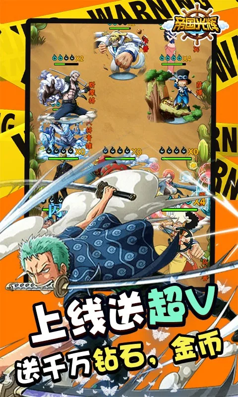 想要成为海贼王的男人吗?想要探索“One Piece”的宝藏吗?这是一款玩家组织自己的伙伴一起探索“One Piece”的宝藏,上线就送全图鉴卡,顶级阵容任意搭配,新增巅峰阵容商城,每日领取顶级神卡,上线送超级VIP,千万钻石,千万金币,多重豪礼拿到手软,你还在等什么呢,一起来探索“One Piece”的宝藏吧!!!