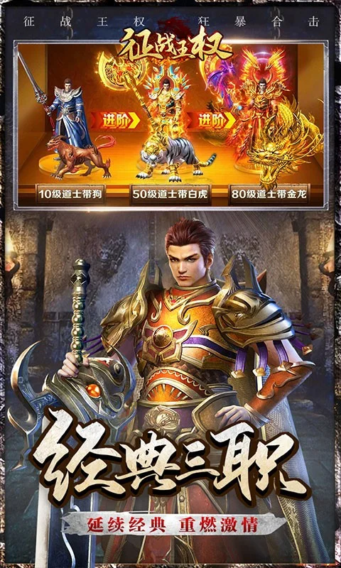 《征战王权》是一款全新三职业的传奇游戏。经典战道法三职业,完美融合并升级了传奇的多种玩法,满屏刷怪,疯狂打宝,飞速升级,百人沙城,千人同屏!燃起激情岁月、感受神装满屏高爆、刀刀砍怪带来不一样的肾上腺素迸发。邀上行会兄弟携手共进,激情对战,共谋传奇霸业!