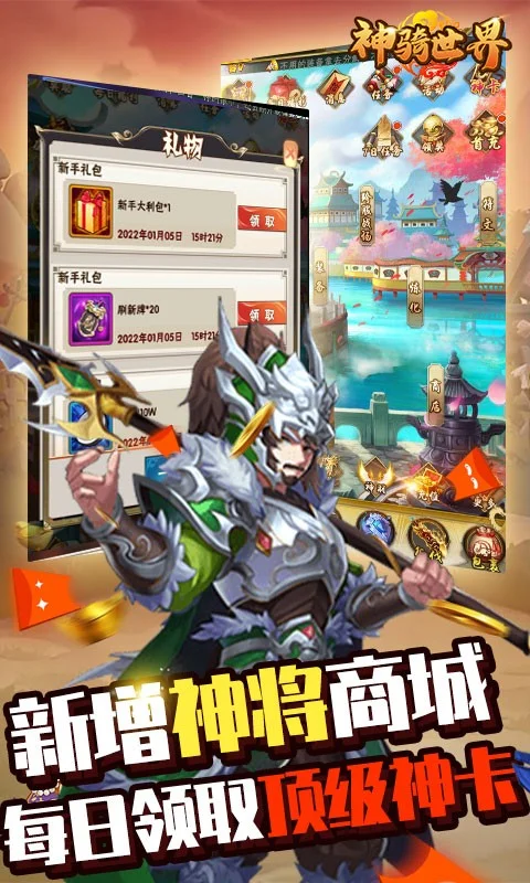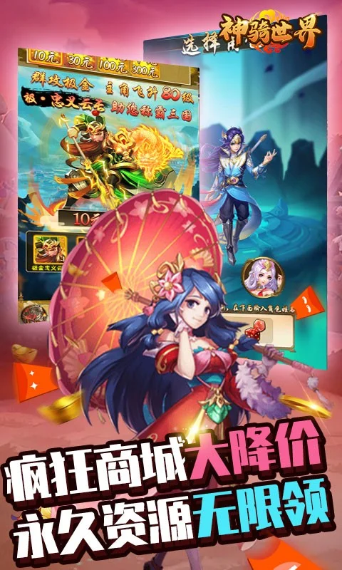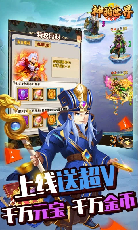 顶级的美术资源,百玩不腻的游戏内容,无处不在的游戏互动,汇聚成了这一跨 神骑世界(0元全神将)!上线即得全图鉴卡,所有的顶级武将任意搭配,既有诙谐幽默轻松的剧情设计,又有与黑暗势力对战的激情澎湃,让玩家体验战斗的快感,多重豪礼随心送,上线送超V,千万元宝,千万金币拿到软,新增神将商城,每日领取顶级神卡,疯狂商店大降价,永久资源无限领取,还在等什么呢,快来吧!