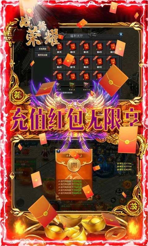 《战场荣耀》是以传奇为题材的单职业角色扮演手机游戏,游戏内可以通过多种方式获得充值红包,各式各样的炫酷装扮,顶级装备,游戏内还可以召唤宠物白虎跟你一起参战,还有小精灵伴你左右,参与游戏内丰富的活动任务及玩法,玩家可以互相争斗进行战斗直至最后胜利者即可获得唯一称号,还能与自己的兄弟共同征战,统霸全服!